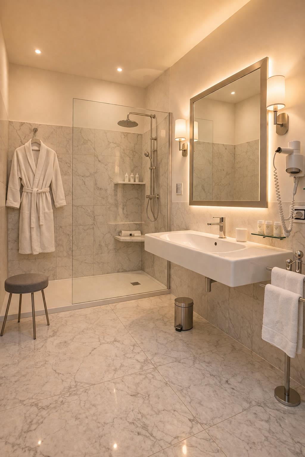 Camera molto ampia, dotata di doppia finestra con gradevole balcone, è dotata anche di una zona salotto. Bagno lussuoso con doccia maxi.